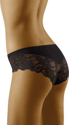 Damenhöschen EMMA sind sehr bequem, hüftig geschnitten. Die Kombination aus glattem Stoff, gewelltem Saum und luxuriöser Spitze verleiht diesem Modell große Originalität. In der Taille befindet sich ein weicher Gummizug.